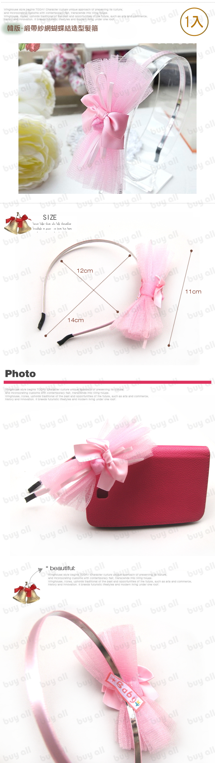 【兒童表演,宴會,裝扮配件髮飾造型系列】氣質造型手工髮箍-韓版-緞帶紗網蝴蝶結造型髮箍/兒童髮飾/髮圈/兒童飾品